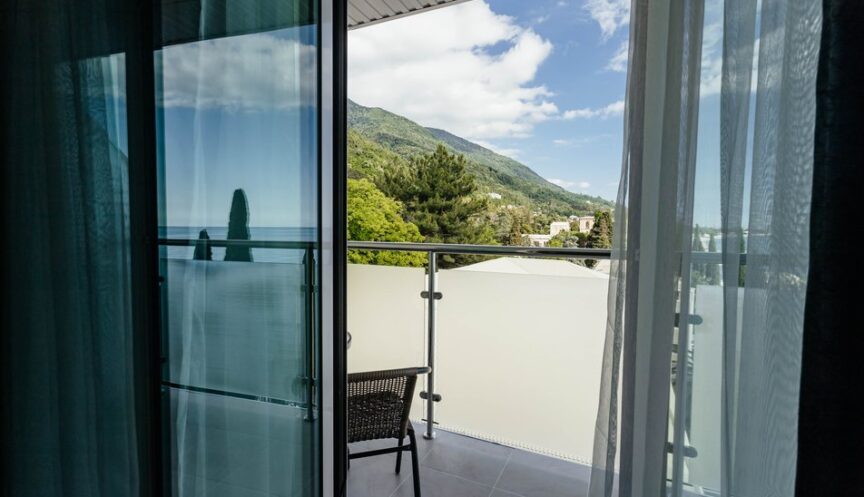 Апартаменты в трёхкомнатном номере площадью 60 кв. м. В номере есть мебель: вешалка, диван, зеркало, комод, двуспальная и односпальная кровати, стол, журнальный столик, стулья и шкаф. Также в номере установлено оборудование: сейф, сплит-система, телевизор, телефон, холодильник и чайная станция. В номере есть балкон с мебелью.